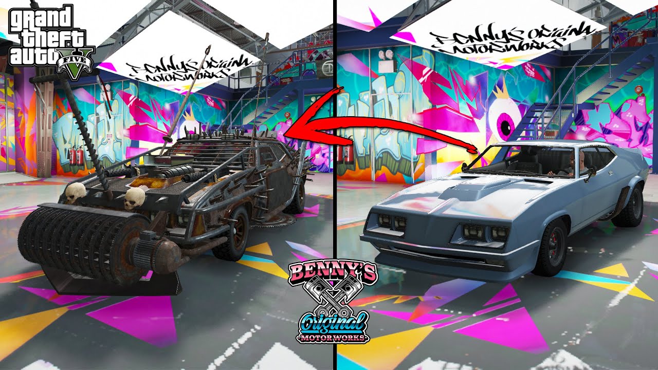 في GTA Online، يوجد جراج أسطوري يسمى Benny's Original Motor Works متخصص في تحويل السيارات الكلاسيكية والـ Muscle إلى وحوش حقيقية! يمكنك تركيب أنظمة هيدروليك للقفز بالسيارة، وتغيير الديكور الداخلي بالكامل، وتركيب سماعات عملاقة، وحتى تصفيح السيارة.